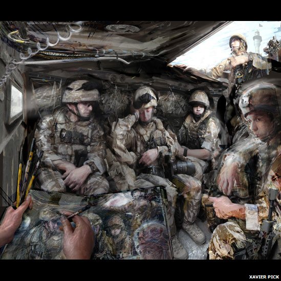 See the entire "portfolio", the gallery/slide show of military sketch art as done by Xavier Pick. Thanks to the BBC! Xavier a very talented artist whose skill is to be greatly admired.